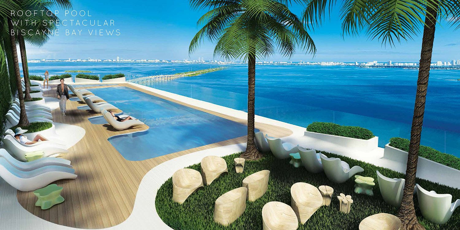 Roof pool on the 44th floor Club with 50 ft long pool and private treatment pools