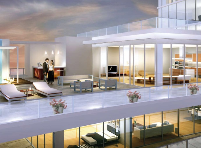 Miami's Paramount Bay Designer Grand Club Room features a full catering kitchen and a state of the art entertainment system.