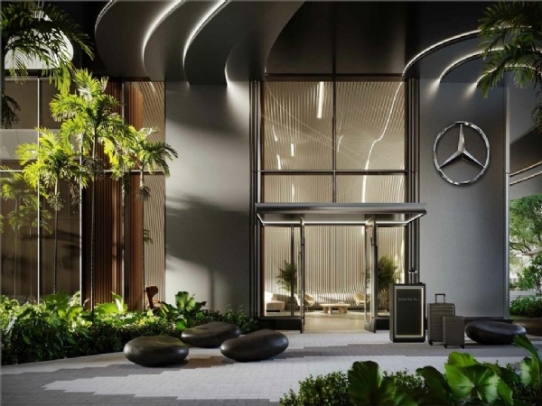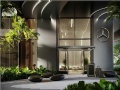 - Illuminated Bianco Gioia marble ledge reveal and fluted glass doors