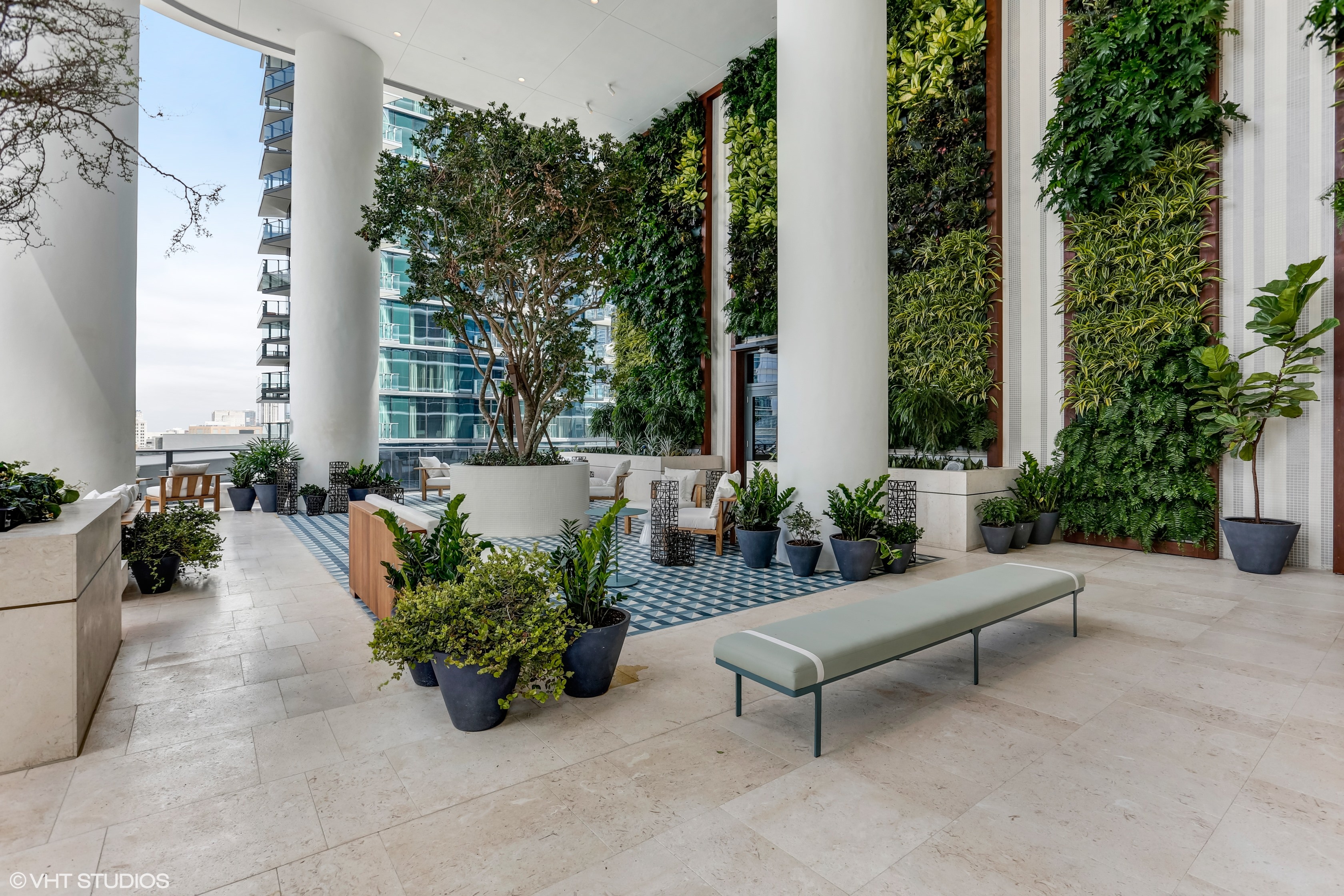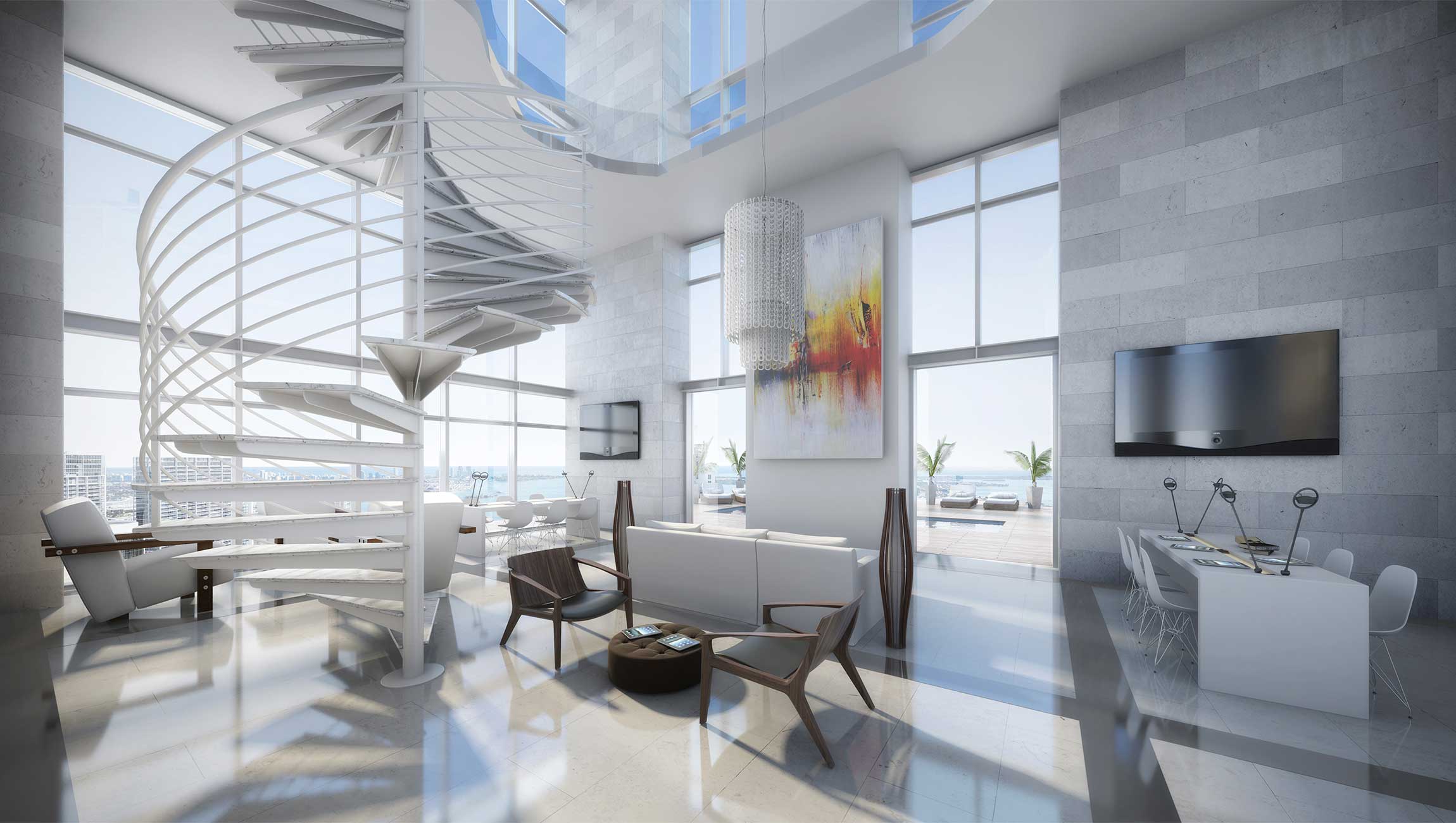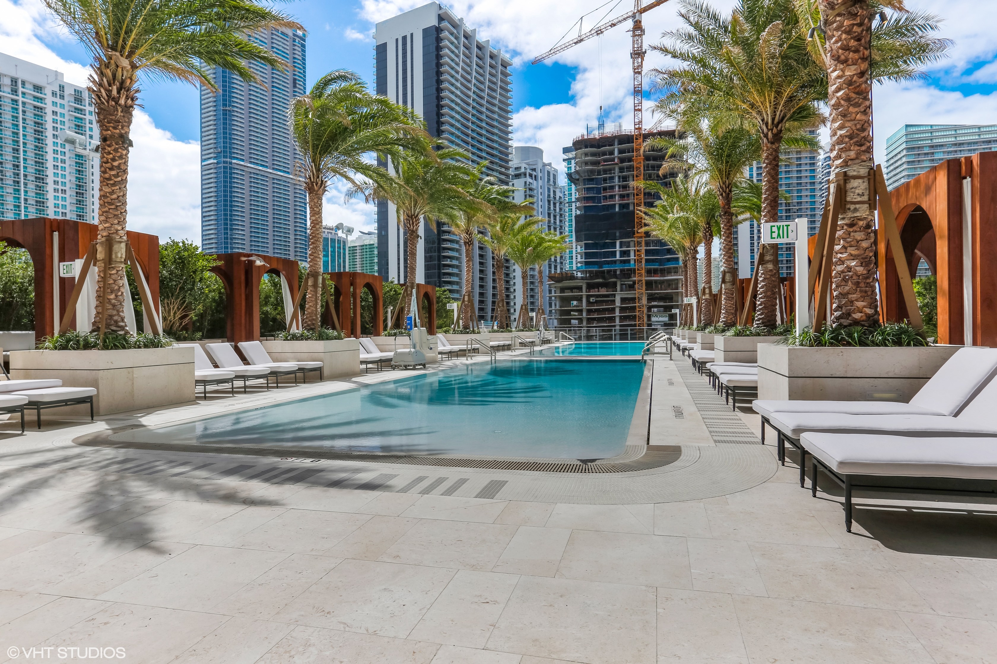 - Expansive rooftop terrace overlooking the Brickell Skyline feaures a 75-foot lap pool and a separate 112-foot beach entry pool.