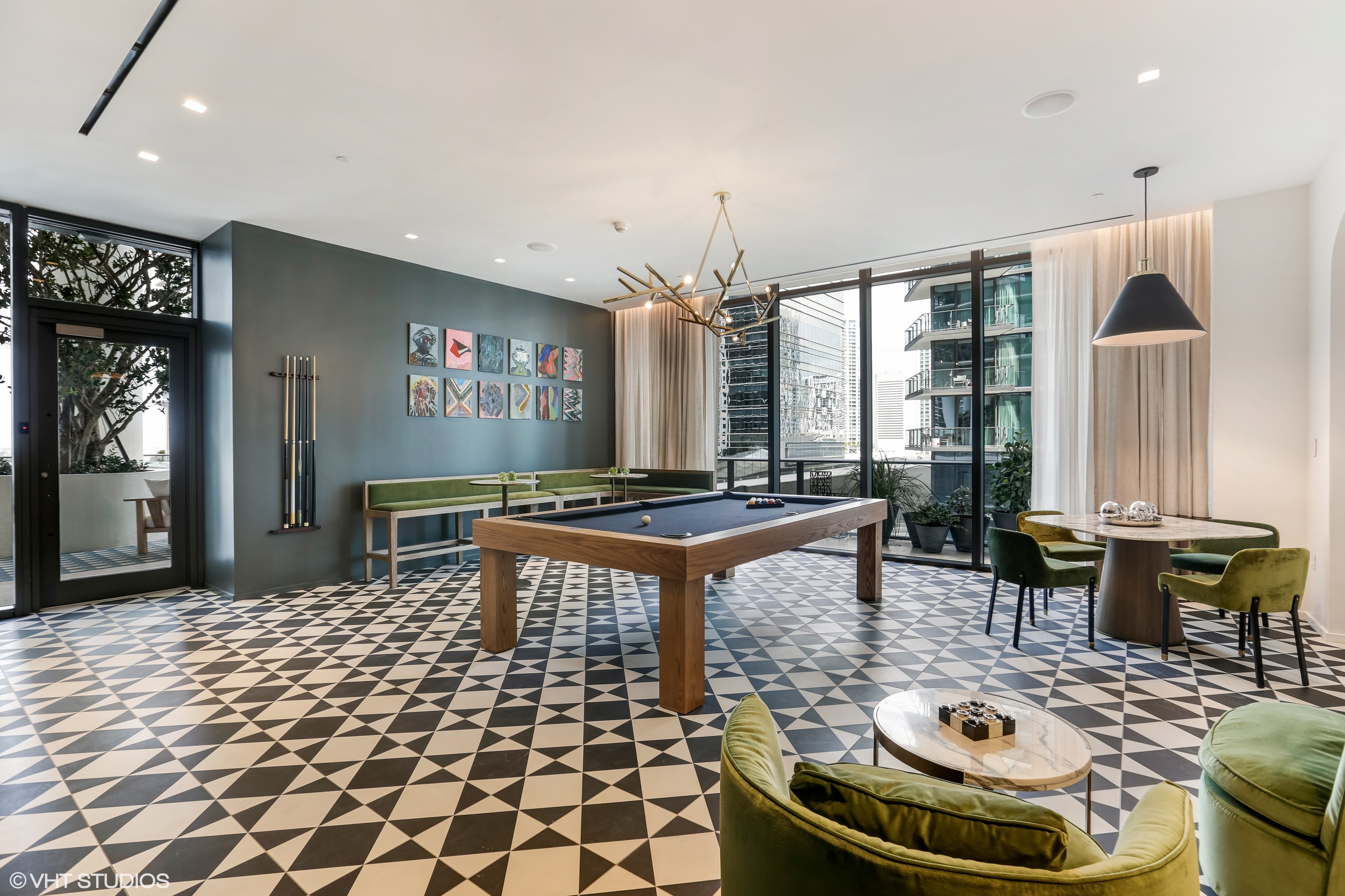 - Club Room Lounge enables residents to gather with family and friends while enjoying flat-screen TVs with major sports programming with a built-in speaker system, and a fully equipped gourmet kitchen.