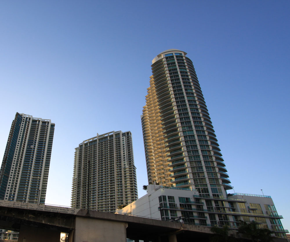 Panoramic Miami River, Biscayne Bay and downtown city views