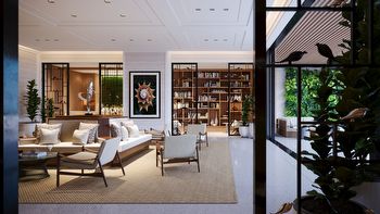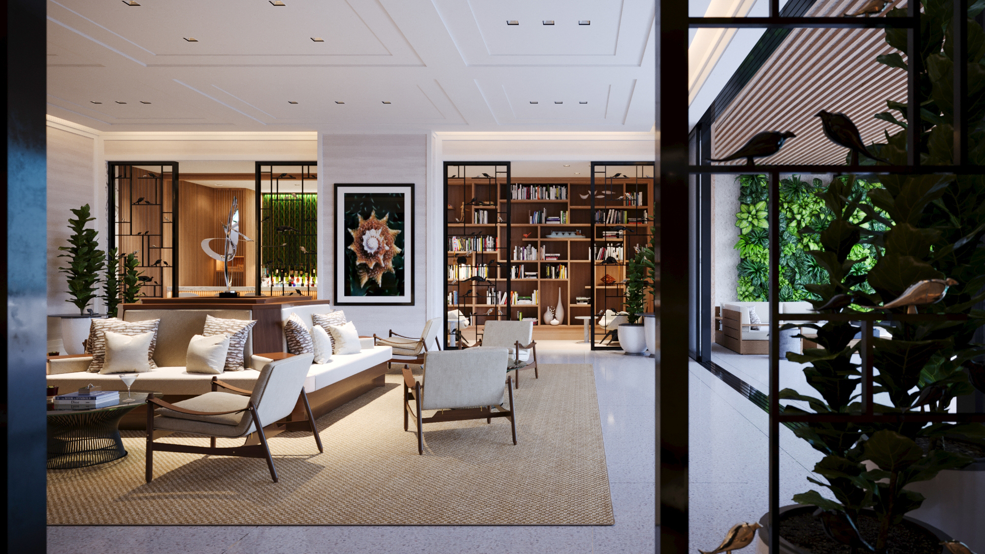 Waterfront north lounge with butler-serviced Italian aperitivo bar and intimate library