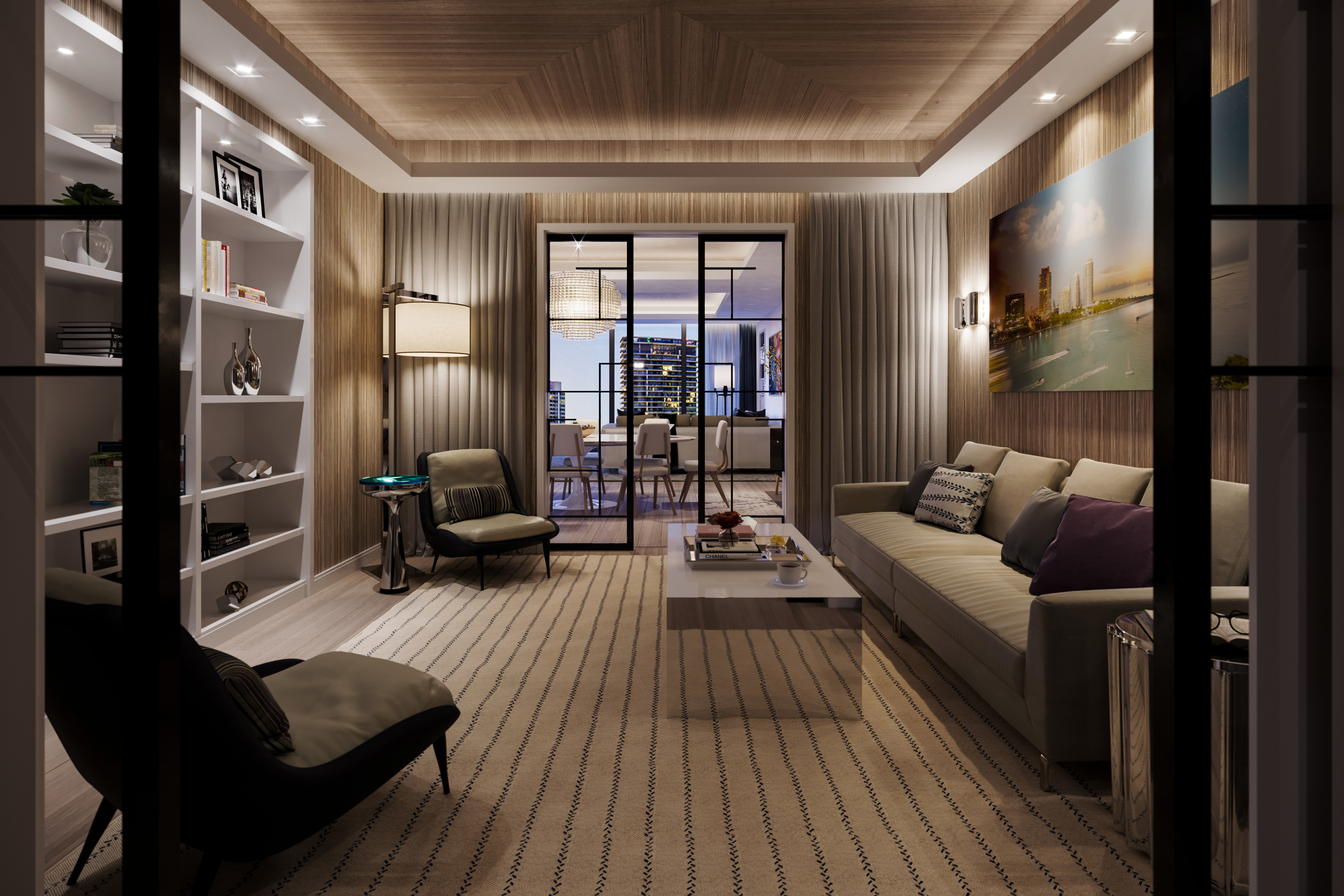 Media room with luxury seating available for private viewings and functions•Business center with video conferencing capability