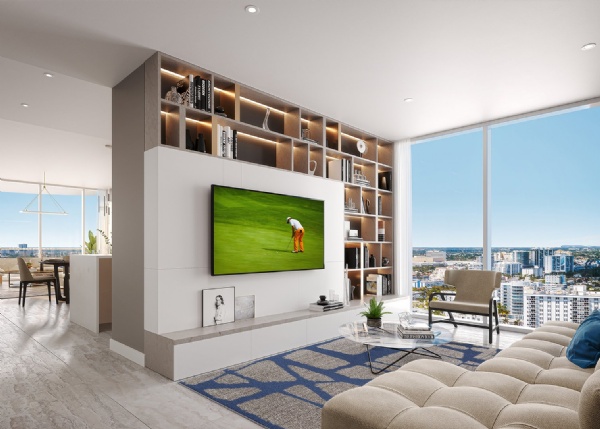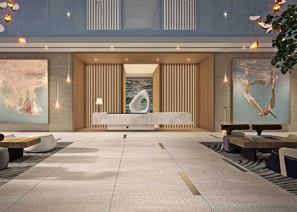 - Dramatic, covered arrival plazas and elegantly appointed lobbies, where a reveal between the towers provides an open view of the sky and creates an impressive arrival experience for residents and their guests