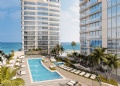 - A spectacular elevated beachfront Amenity Deck showcases sweeping Atlantic Ocean views and features a resort-style pool, a 75' lap fitness pool and a spa, contemporary poolside cabanas and day beds, open gathering spaces and intimate conversation areas, an outdoor kitchen, multiple cozy fire pit lounge areas, and a pavilion-shaded pool bar