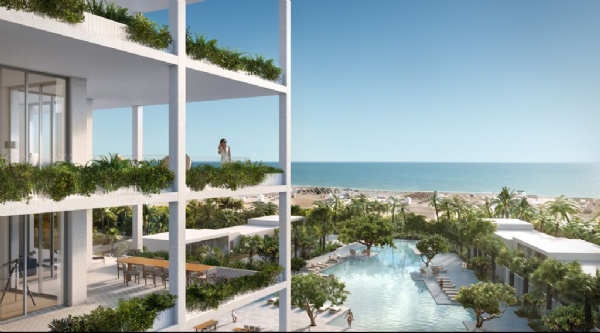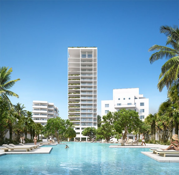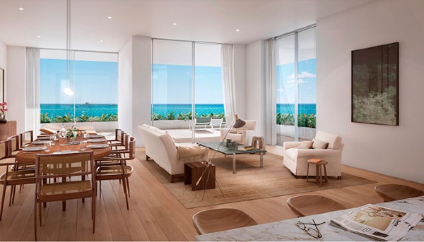 The duplex penthouse features a reooftop pool, summer kitchen and direct ocean views