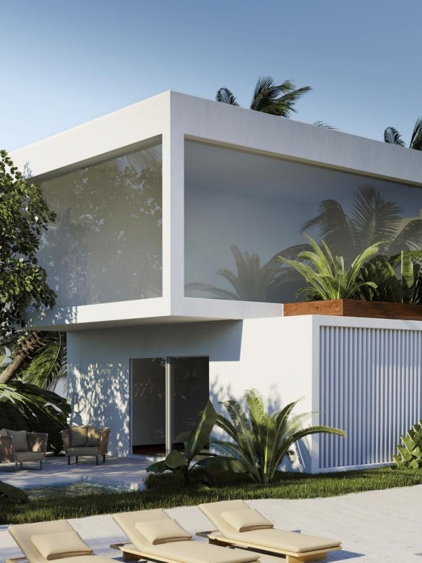 There are 5 two-story Beach Houses featuring beautiful views of the ocean and lush landscaped pool deck