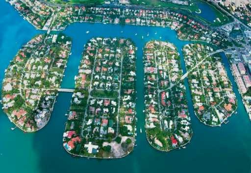 Most of the waterfront lots have boat docks and sit on generous lots. Each of the four islands feature a range of architectural styles of homes from old world appeal and Mediterranean classics to modern sophistication and avant-garde, all with their own unique allure. These islands are all guard gated and contain homes that are well over one million in starting price.
