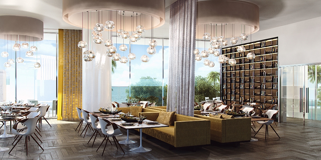 A three-level indoor/outdoor private club is set approximately 300' above sea level (on the 30th thru 33rd floors) and includes: