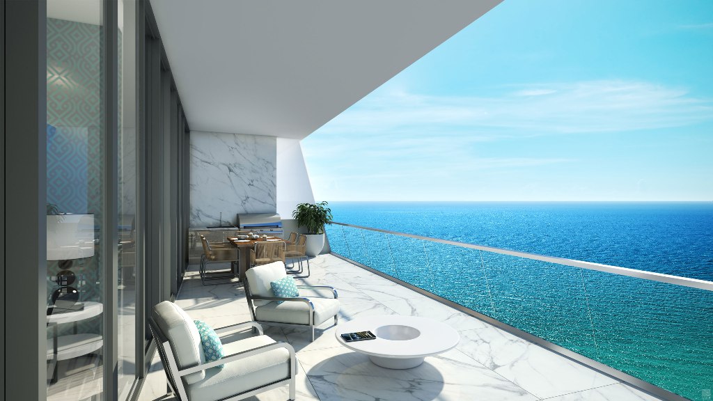 Residences have an 11-foot deep, oceanfront balcony as well as a balcony overlooking the bay